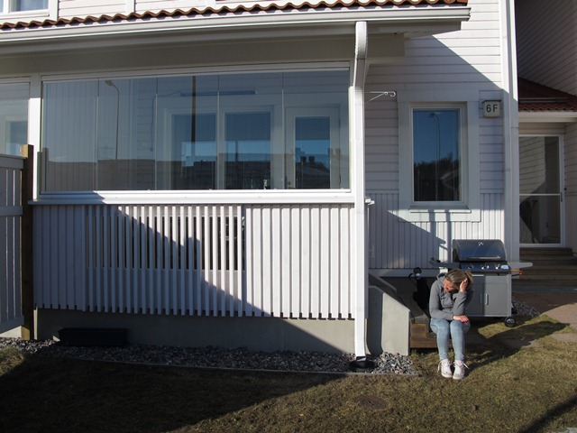 Skönt att vila i solen efter allt krattande. Kolla förresten! All snö är borta. Jämför med gårdagens bild.