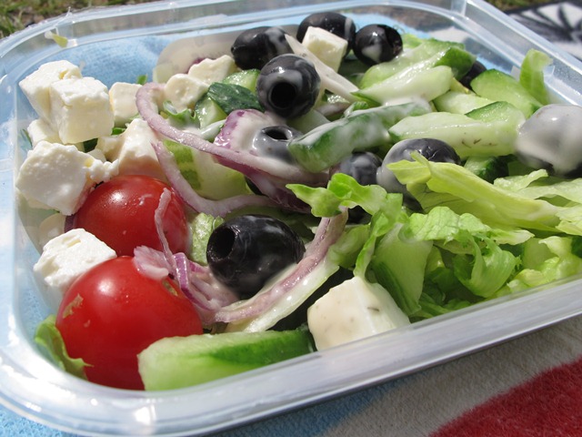 Det blev några underbart sköna timmar på stranden. Molnen kom och gick och det blev trettio grader varmt. Som ni ser försöker jag med alla metoder hålla i min greksemesterfeelis. Det går sådär. Nu ska jag gå in i husets svalaste rum, badrummet och sedan laga i gång mig för kvällens examensfest.