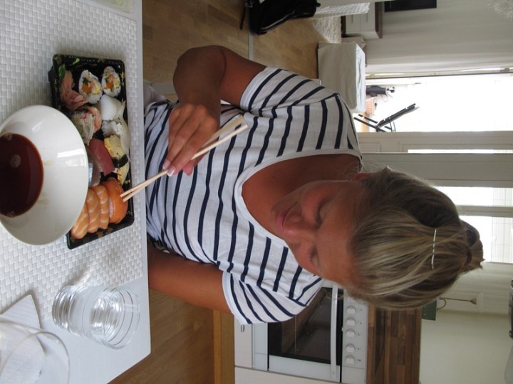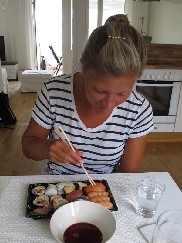 Tvingades på grund av solstinget hoppa av min sushidejt med flickorna. Som plåster på såren hade P med sig lite take away hem. Inget mindre än sushi. Tur att han är så genomsnäll och omtänksam. Nu är min sushilängtan tillfredställd för denna vecka.
