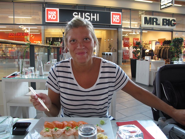 Vi hängde i Jumbo några timmar och helt av misstag såg jag ett sushiställe. Fortare än fort hade vi redan beställt och klämde i oss sjukt god sushi. För en liten stund var jag i himlen, svävade på moln, nåjo, ni vet vilken som är min favoritmat vid det här laget.