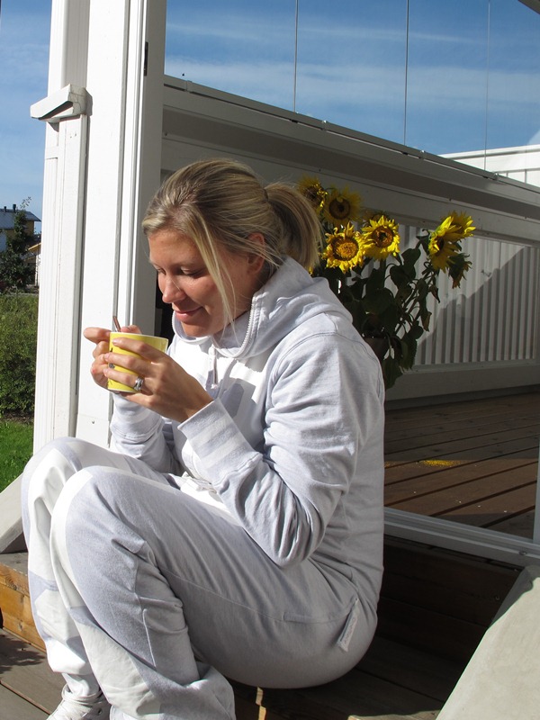 Visst kan man njuta av en vacker söndag. Det krävs inte så mycket. Hälla upp lite kakao i en mugg och sedan sätta sig på trappan i solskenet. Det räcker. I alla fall fem minuter. Sedan måste man redan gå in och fylla på kakaomuggen.