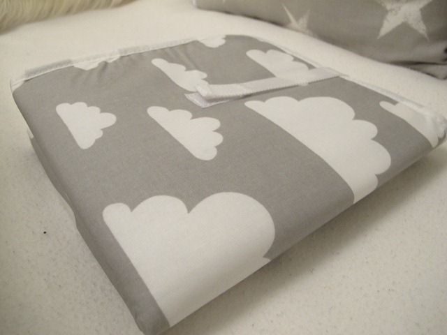 Ett skötunderlag till ytan i badrummet. Stället ser färdigt ut som ett skötbord så vi passar på att spara en liten peng och använda den ytan som skötbord med lavoaren inom räckhåll.