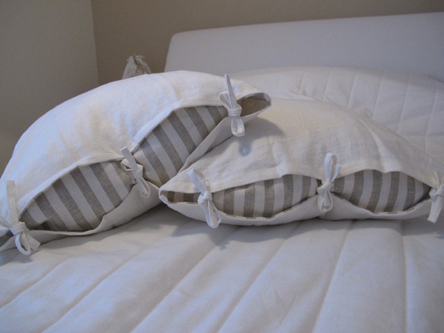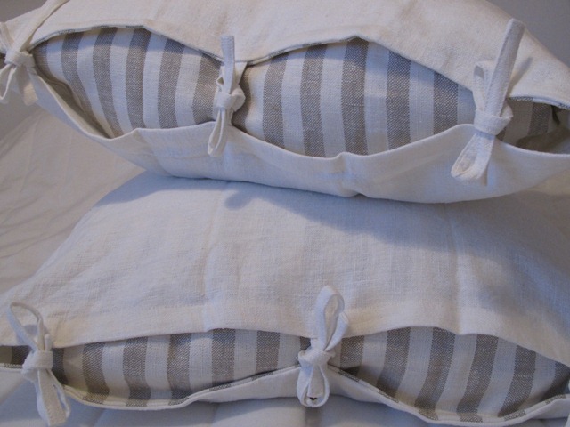 1. Snyggt! Är det innerkuddarna som är randiga eller är det liksom ett innertyg? Fint i alla fall att det randiga sticker fram.