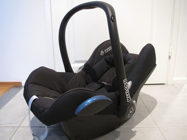 Maxi-Cosi CabrioFix babyskydd med tillhörande FamilyFix bas. Adapters till vagnen är på väg. Det kommer att vara det bästa någonsin, att klicka fast stolen direkt från bilen till chassit.