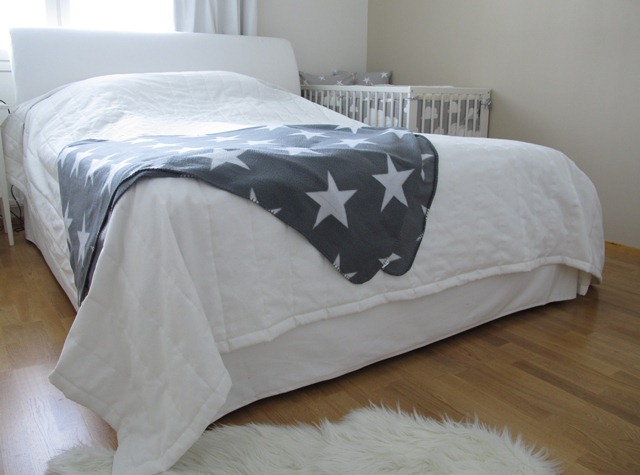 Så valsade vi runt med alla möbler i sovrummet för att få in Litens säng och fortfarande komma åt alla skåp och ha bra med utrymme. Men. Den nya ordningen gör något fruktansvärt ont i mitt inredningsöga så jag antar att det blir en ny vals i kväll. Den här ordningen ger med god tur tio centimeter till och chansen till att ingen av oss behöver byta sida. Inte alls värt det.