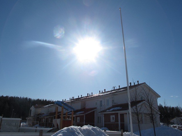 Hej från min dagliga motionsrunda. Ni vet, ut med skräpet, via postlådan och in. Vilket underbart solskensväder vi har. Jag tror att den här dagen är den perfekta för att sätta vår minimänniska i vagnen för första gången och ta en kort promenad. Spännande.