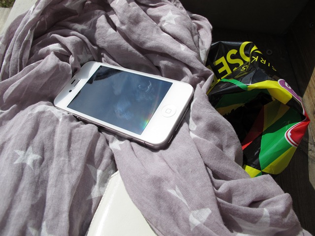 En stunds paus på trappan medan flickan vilar vidare. Lite godis, lite rumble och lite bloggläsning.