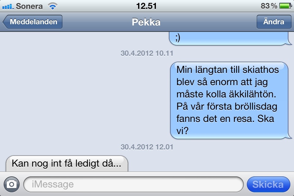 Ja, min fina idé. ;) Fast kanske en vecka senare skulle funka när vi båda är lediga.