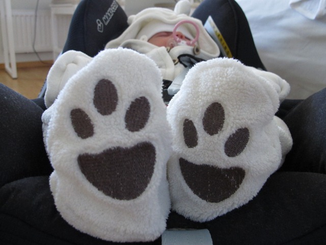 Så blev det artistiskt igen när vi åter vågade oss ut i kylan. Männen sköter fint både burkar och gråtlarm.