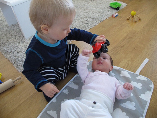 Melwin kunde hjälpa med det ena och det andra gällande blöjor och kläder. Det förvånar mig ändå lite att han tycks tro att Minea är riktigt närsynt och nästan döv.