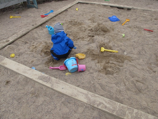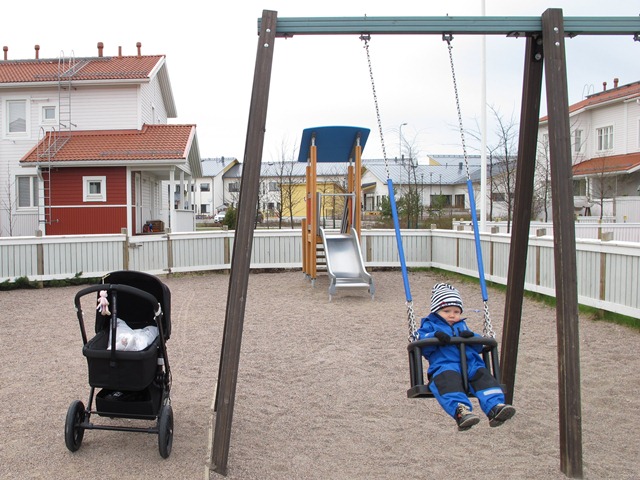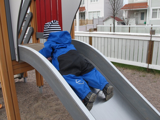 Först var det väl lite tomt i parken. Men ni skulle ha sett en halv timme senare. Då infann sig flera mammor, bugaboon, tusen härjande barn och en übersöt flicka som Melwin blev lite kär i. Men känslorna var visst besvarade. Av henne lärde han sig till exempel rutscha på mage sådär häftigt.