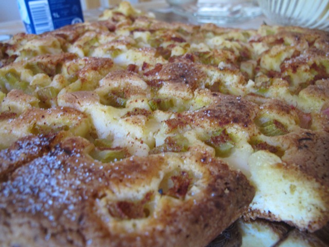 Det är mamma som har bakat. Tyvärr har jag inte receptet på den rabarberpajen.