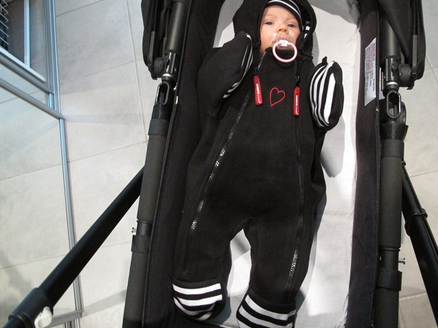 Första juni. Ruskigt väder. Minea har sin windfleece på sig för första gången. Mycket passlig för svala sommardagar. Ja, nu är de här de där svala sommardagarna som vi reserverat så många klädesplagg för.