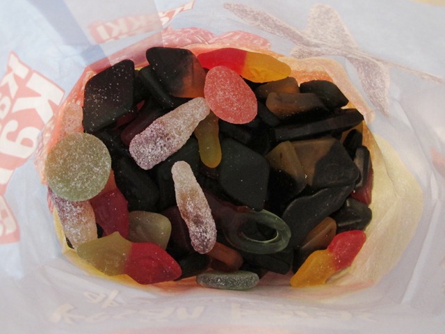 Jag har varit utan godis i två veckor. Av misstag egentligen. För jag bestämde mig att endast äta godis på lördagar. Förra lördagen missade jag. Så nu har det då gott två hela veckor utan E-kodsgodiset. Nu hade jag garderat mig och köpt en stor påse med plockgodis. Så öppnade jag min stora påse. Åt hundra gram och höll på att dö av illamående. Därmed överväger jag att sluta äta godis helt och hållet. Ett sådant övervägande händer aldrig, men hände just nu.