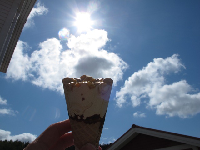 Det har varit rätt kalla dagar för glassdieten, med minst en glass per dag hela sommaren igenom. Idag känns det dock helt okej med femton grader och sol. Det innebär att man gott och väl kan avnjuta sin glass ute på trappan.
