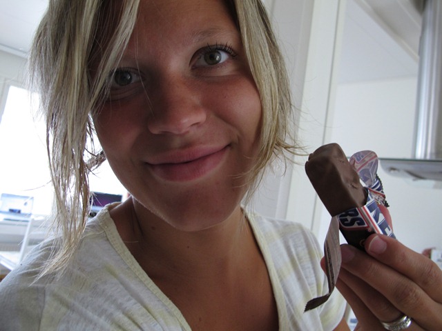 Det finns väl olika sätt att börja en grå söndag på. Jag har börjat min med dusch och Snickers. Lite störd är jag eftersom nästan hela resesällskapet har drabbats av någon midsommarsnuva. Imorgon ska vi åka till Stockholm. Jag satsar på att hållas frisk med choko. Vet inte, det kanske funkar. Nåja, egentligen inte så viktigt om det funkar eller inte. Gott är det i alla fall.