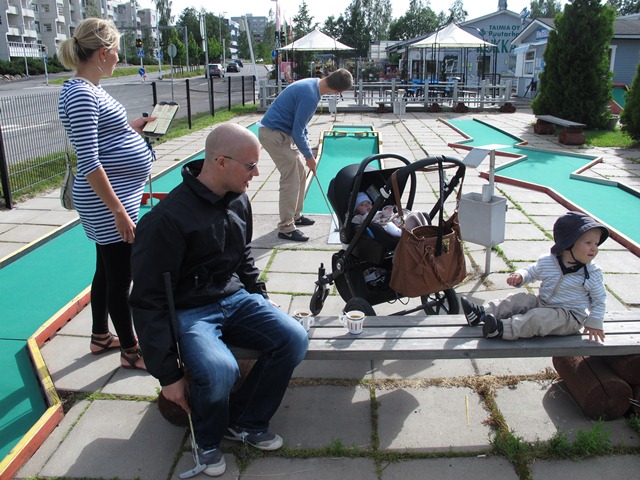 Jag och mitt entourage tog en runda minigolf ikväll. Ett absolut sommarmåste. Undrar om vi inte gjorde det alls ifjol. Det var väl så varmt att vi inte hann bland allt strandhäng och illamående. Men i år var rundan iskall. Vem hade inte velat ha en sådan liten mysig etta som den yngsta av oss fick ha. Fick lust att rycka filten av henne och vira in mig själv i den.