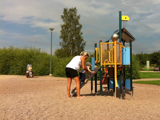 Lite lekpark. Det är nästan lite givande redan när Minea kan gunga och greja lite.