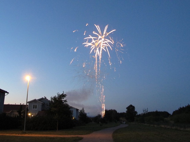Så är byns Kansanjuhlat slut för i år. Precis som vid nyår blev det ett riktigt snyggt fyrverkeri. Härligt att bara stiga ut och kolla på hur de levererar. Men verkligen tusen gånger behagligare den här årstiden än vid nyår när man står där med kamera i ena handen, skumpaglas i den andra och har alltför kalla fingrar för att kunna njuta.
