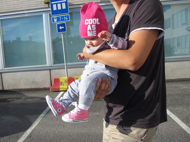 Jaa. Vi har träffat den lilla ikväll. Och samtidigt kom vi på att det idag var exakt fem månader sedan vi lämnade sjukhuset med en liten Minea inpackad i sin bilstol. Idag såg det lite annorlunda ut när vi steg ut på parkeringsplatsen.