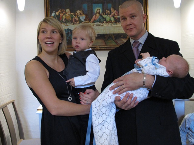 Det var ett härligt dop vi fick vara med om idag. Den lilla var superduktig, sången gick riktigt bra, bjudningen var fin och stämningen skön.