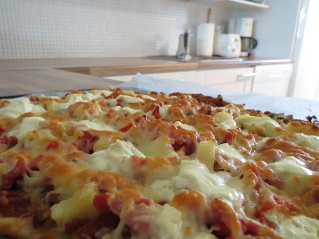 Vilken produktiv söndagsförmiddag. Städning, pizzabak, kakbak och gäster. Nu inväntar vi nästa gäst och bara chillar. Vilodag.