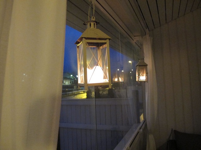 Fick julstämning. Varför redan nu? Höh. Men bestämde mig för att tända lite ljus och lyktor. Härlig stämning blev det.