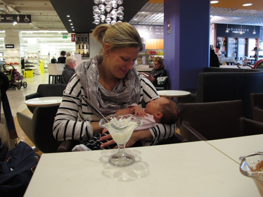 Nu hade det blivit dags för en shoppingtur med den lilla. Kanske det är därför hon gillar butiker? Det gäller att börja i tid bara.