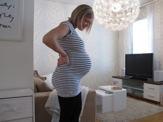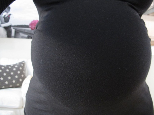 I slutet av januari började magen vara rätt stor. Jag gick ju på gravidpilates också. Egen pilatesboll hade jag ju med mig.
