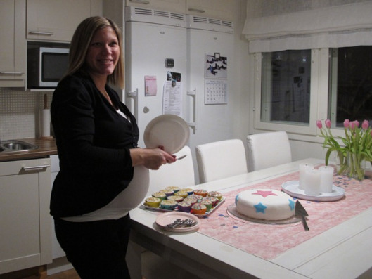 Flickorna ordnade en härlig baby shower för mig. Till och med här var jag orolig för sötsakerna. Jag var livrädd för varje liten kakbit.