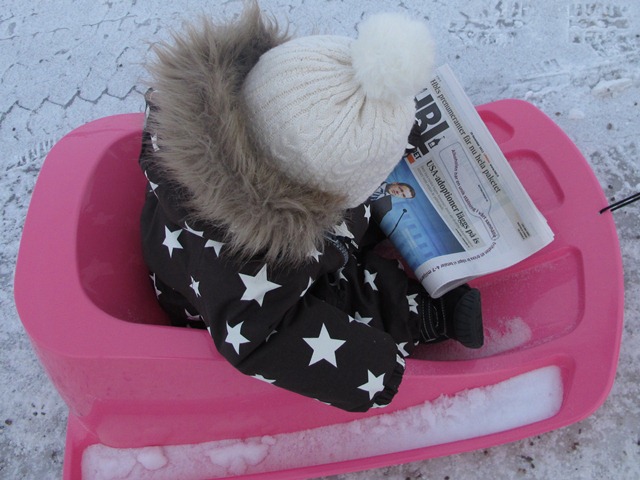 Visst, visst kan man läsa tidningen medan man åker pulka. Två flugor på en smäll.