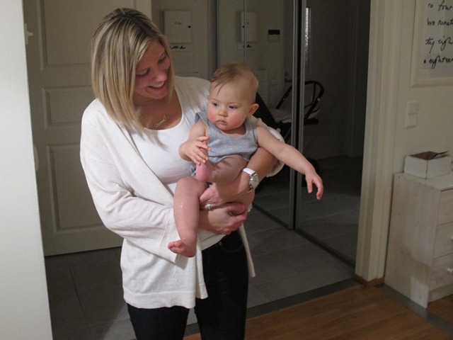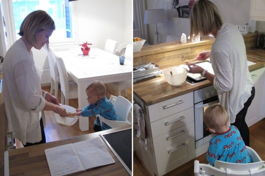 Sedan blev det klart att vi skulle få besök och vi började baka. Minea ville absolut inte leka. Hon ville bara sitta och titta på.