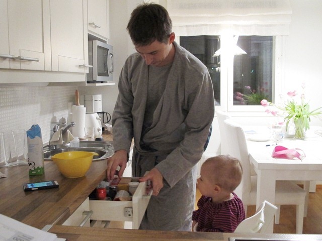 Är min man inte den bästa? Svänger ihop plättsmet och steker plättar till frukost. Bara att bänka sig och äta. Det kallar jag en bra start på söndagen.