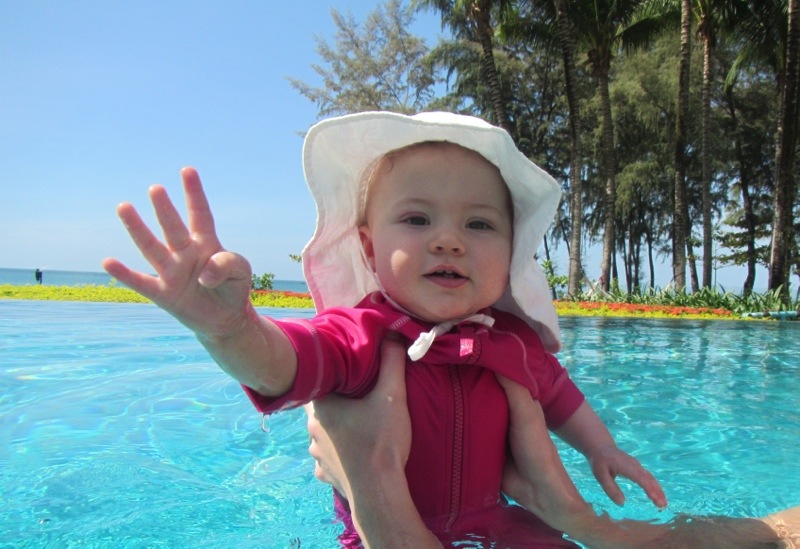 Vår lilla simmagister. Hon fullkomligt älskar poolen och havet. Högt tjoande varje gång.