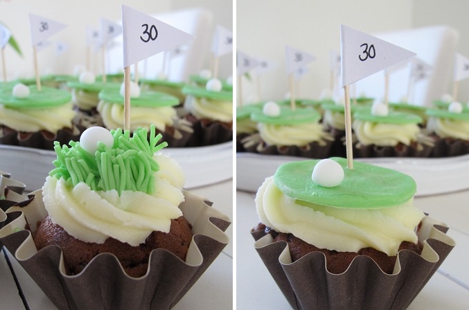Ett fint kalas har vi haft för P idag. Han är ingen kakfantast så det fick bli cupcakes istället. Passade ju mig ypperligt. Pätkis cupcakes blev det enligt Kinuskikissas recept och med ett litet golftema denna gång. Frostingen gjorde jag enligt receptet: 100g smör, 60g philadelphia, 4 dl florsocker. Dekorationerna gjordes av sockermassa.