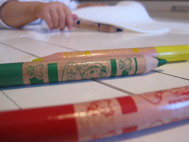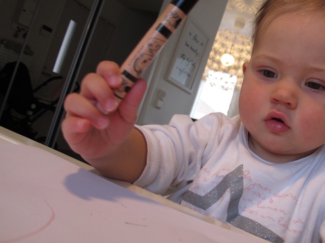 Här har vi haft en konstnär i farten. En mycket ivrig sådan. Många streck på ett papper, det papper som får klistras in i boken som Min första teckning.