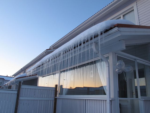 De här istapparna som hänger från terrasstaket blir bara häftigare för var dag som går. Så här såg de ut ikväll när vi kom hem.
