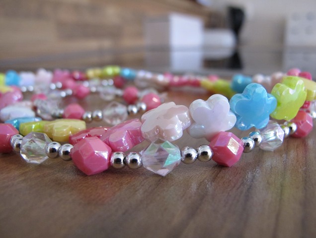 Oj vad mycket bling Minni fick igår. Två halsband och ett armband. Och redan innan hon var påklädd idag skulle allt på.