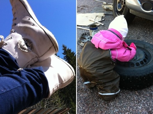 Alltså för skönt med sol igen. Nu har man åter gillat att vistas utomhus. Idag åkte vi till mamma och S. Helt perfekt för mig att chillaxa i solen medan fröken vilade och helt perfekt för Minni att bada i vattenpölarna när hon inte vilade.