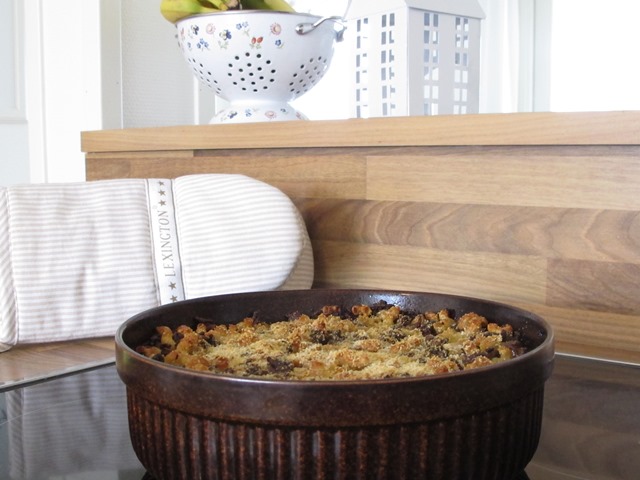 Så där står den nu och doftar gott, makaronilådan. Och väntar på att timmarna ska gå och det ska bli lunchtid. Började dagen med matlagning. Inte helt optimalt, men ganska skönt att ha det gjort och ha hela dagen framför sig.