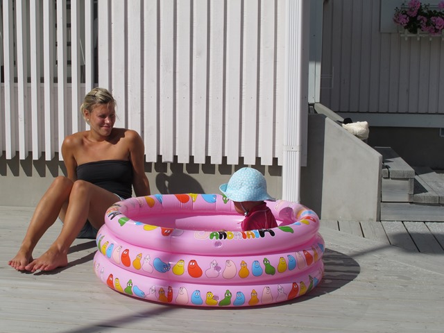 Efter fyra timmar i bil var det nog skönt för vår lilla att hoppa i poolen och för mig att njuta bredvid. Lite svårt att förstå att det är fredag och helg på intågande nu när man trott att man varit borta just över weekenden. Men detta är ju mer än bra.