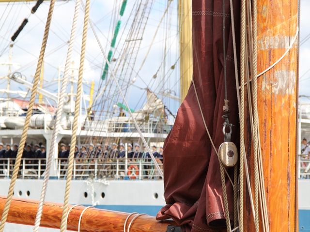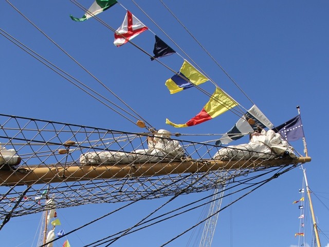 En hel massa att titta på faktiskt. Robbe och Minni kollar väl in när besättningen klättrar i masterna och förbereder start mot nästa hamn.