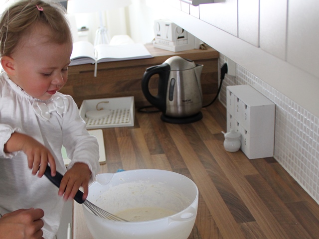 Att greja i köket är alltid en hit för lillis. Idag blev det pannkaka.