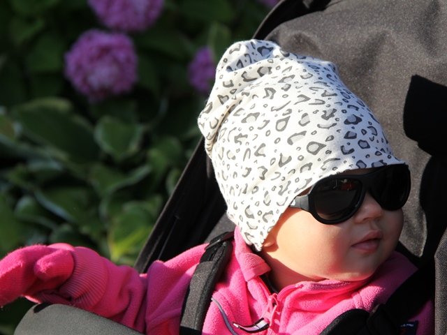 Linn-Sofie, som förevisade Blingokläderna för oss igår, hade med sig en påse med kläder från vårens kollektion som hon sålde för billiga priser. Jag haffade åt mig den här söta mössan åt Minea. Urskön och urcool.