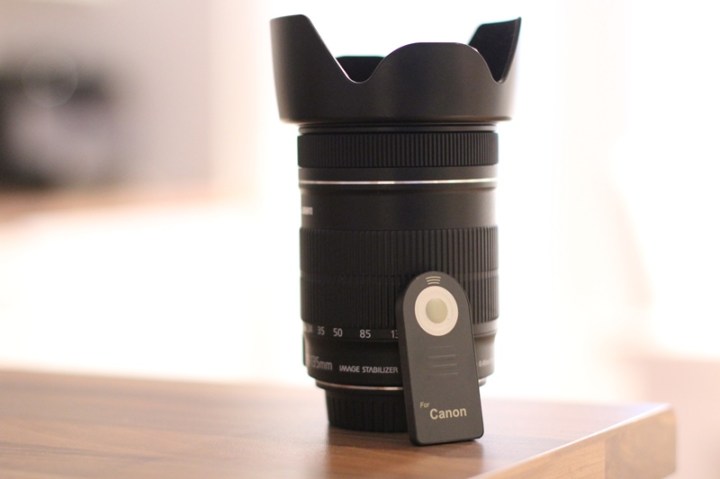 Nej, nej, varken objektivet eller motljusskyddet är nytt. De två bara pausar lite medan jag testar Canons EF 50mm f/1.4 USM objektiv. Men den där lilla prylen i nedre kanten är ny. En enkel fjärrkontroll till kameran.