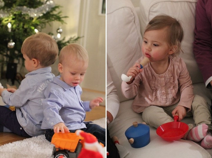 Och vet ni vad. Helt enligt traditionen tjuvstartade vi med en julklapp per man. Melwin fick en långtradare till tågbanan, Milton en dumper och Minea Brios fina köksgrejer. Och stämningen efter att dessa paket delats ut alltså. Varje barn med sitt i lugn stämning. Tror det kan bli annat med många paket imorgon. Men vi längtar så efter julafton. Denna natt innan är alltid så spännande.