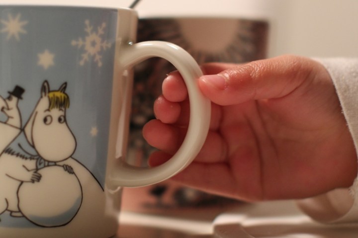Tänka sig att det kan vara så supermycket trevligare att dricka mjölk ur en muminmugg än ur ett vanligt glas. Kan nog förstå den lilla förstås. Varför inte?