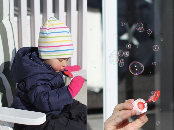 Bubblor, bubblor, bubblor. Ute så gott som hela dagen. Vi tog en glasspaus inne också förresten. Och var till butiken. Och besökte systeris familjs nya hem. MEN ”Mamma, kan vi ut rassen bråsa bubblor?” Nu när r-ljudet börjat landa i flickans språk igen har många l-ljud ersatts av just detta r. Mycket spännande. Så vi har turvis bråst och bråst dessa bubblor.