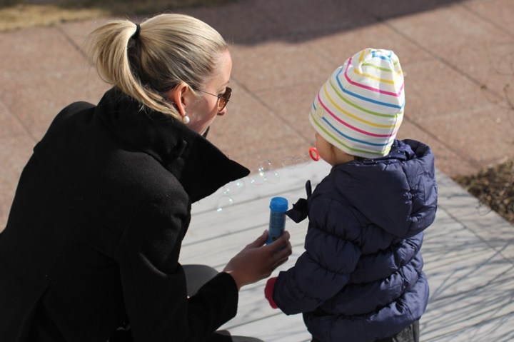 Bubblor, bubblor, bubblor. Ute så gott som hela dagen. Vi tog en glasspaus inne också förresten. Och var till butiken. Och besökte systeris familjs nya hem. MEN ”Mamma, kan vi ut rassen bråsa bubblor?” Nu när r-ljudet börjat landa i flickans språk igen har många l-ljud ersatts av just detta r. Mycket spännande. Så vi har turvis bråst och bråst dessa bubblor.