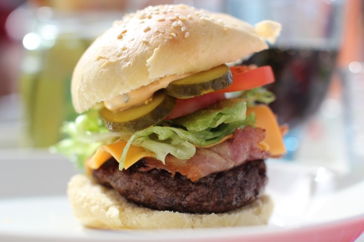 Bjudit kaveris på hamburgerlunch. Ute.
